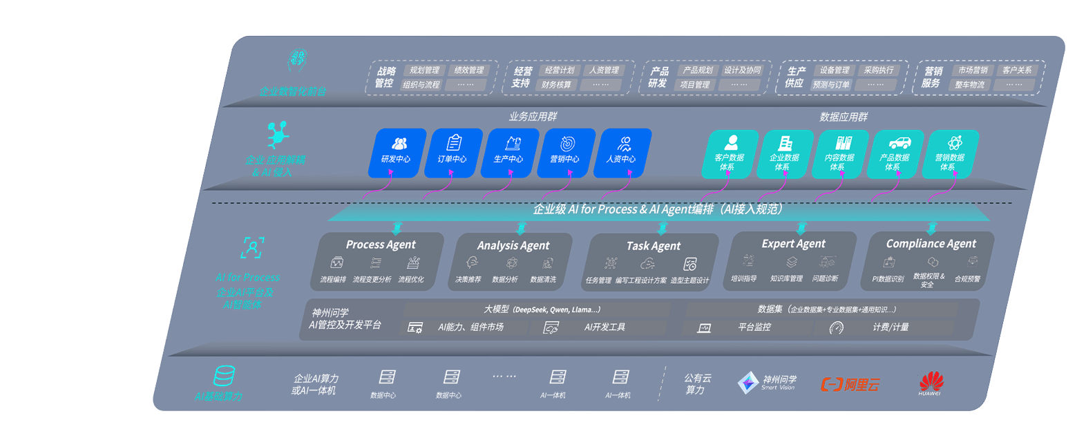 端到端的一站式AI工作空间深度融合了从企业战略规划到日常经营的全流程业务板块,,定向解决车企内部领域多、、、部门多、、链条长、、场景碎片化等难题,,,,支持车企快速构建以AI为核心的生产力写作体系,,,实现任务执行与AI能力的无缝集成与交互